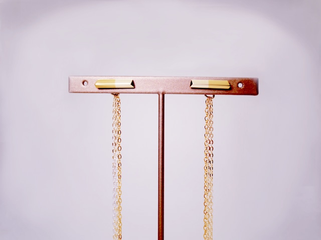 2色のメタルをシンプルでモードなスタイルにデザインしたピアスです。 揺れるチェーンキャッチで印象的な雰囲気に。 普通のキャッチをつけるとすっきりした印象に その日の気分でキャッチを変えて まったく違う印象を楽しめるピアスです。 material silver925/brass/k14GF k14GFキャッチ チェーン長さ約7cm