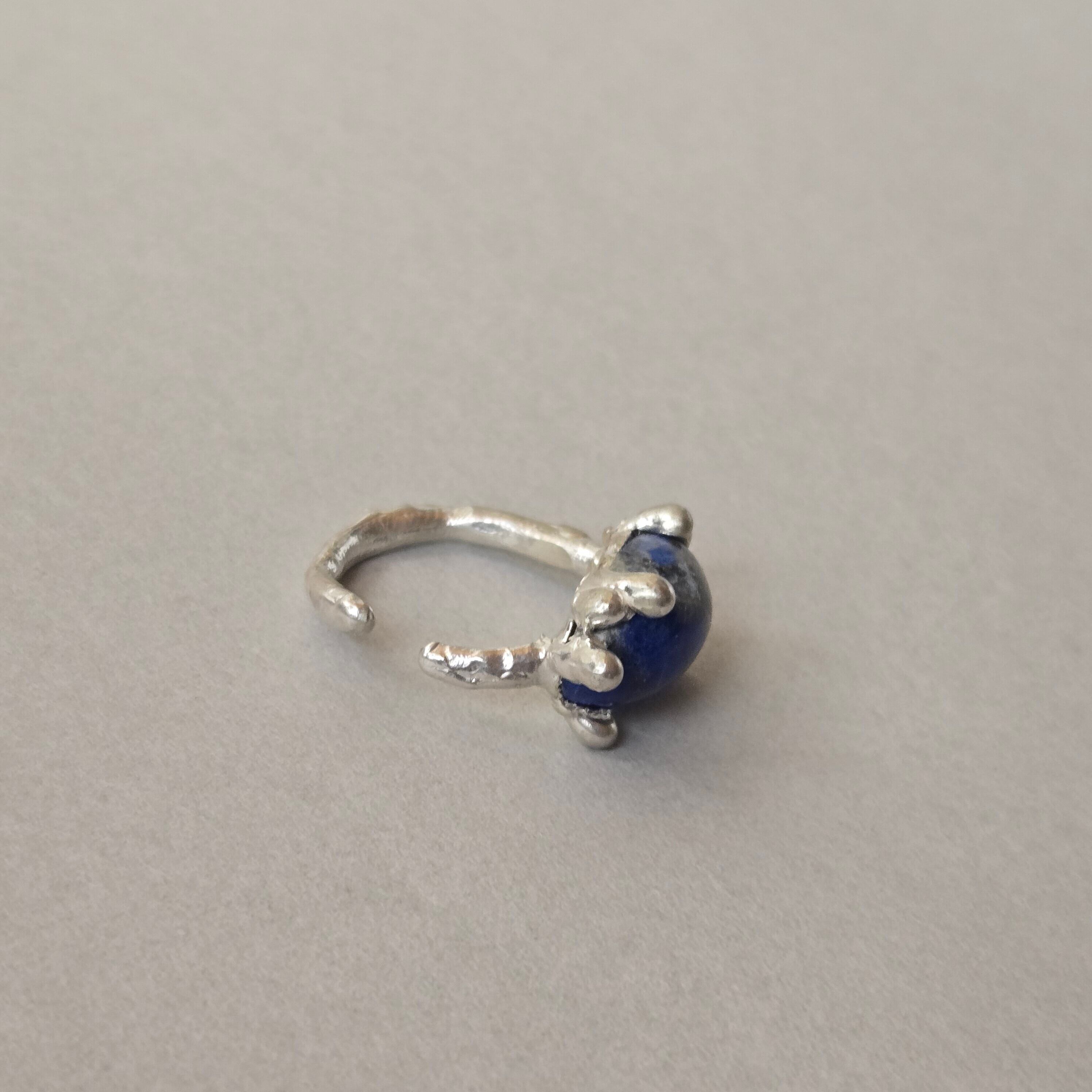 原石の持つ美しさを活かし、一つひとつ手作業でカットし磨き上げたラピスラズリのイヤカフリング。ミニマルなデザインながら、深みのある輝きが指先や耳元にそっと寄り添う。