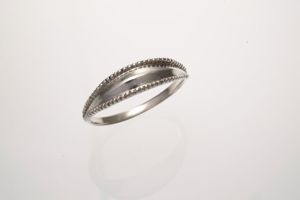 両側をミル打ち加工を施しつつラインを綺麗に表現できるように細部まで作り上げたシンプルで西洋甲冑のようなクラシカルなリングです。