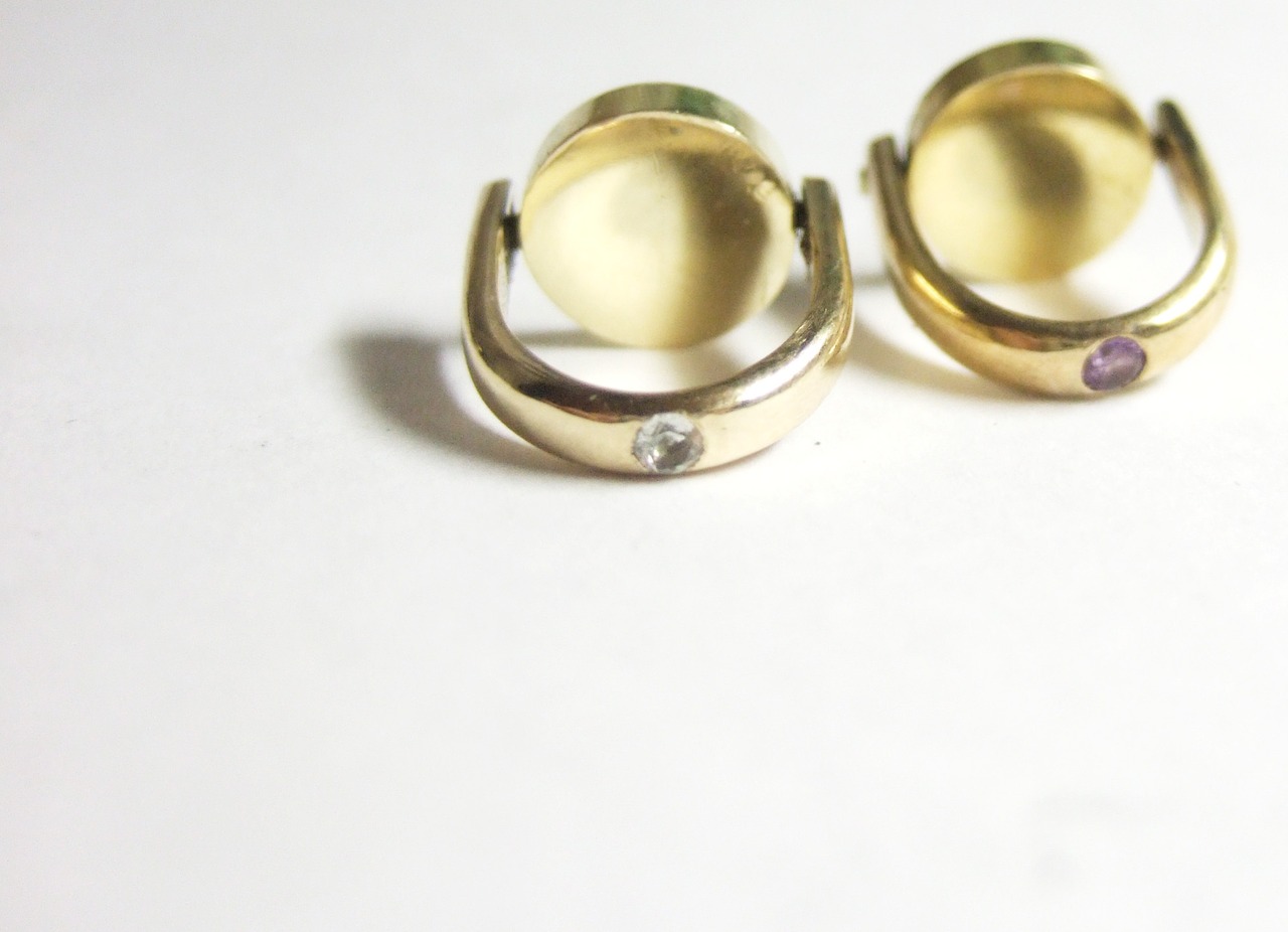 オリジナルデザインのアルファベットをフランスの洋彫りの技法で手彫りしています。指輪の指裏になる部分に誕生石を彫り留しています。【サンプルは2月アメジストと11月トパーズ(ホワイト)】