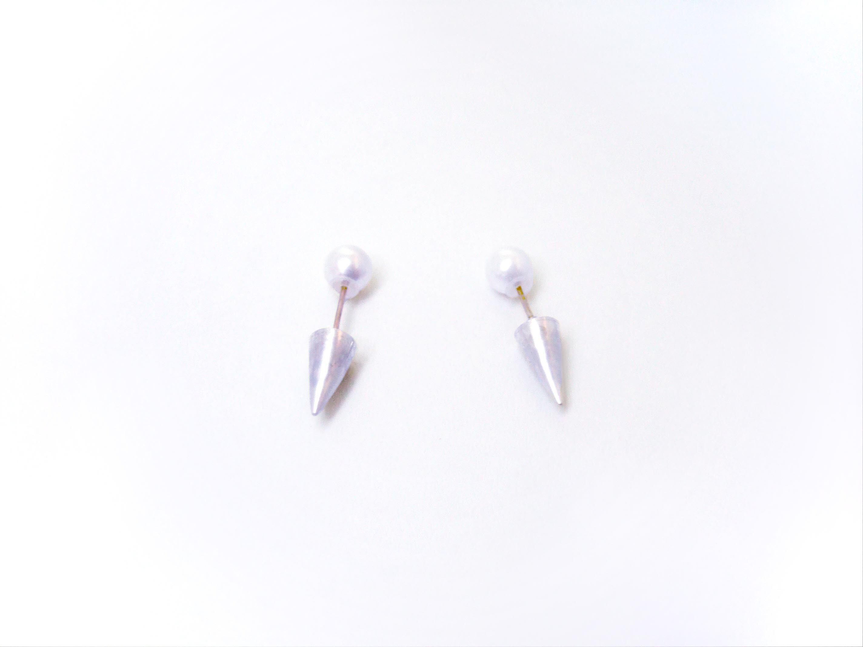 こちらのピアスはスッキリとしたクールなピアスにデザインしパールのキャッチで少しフェミニンに作りました。
